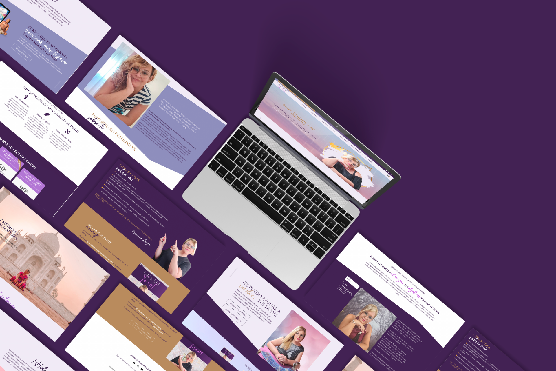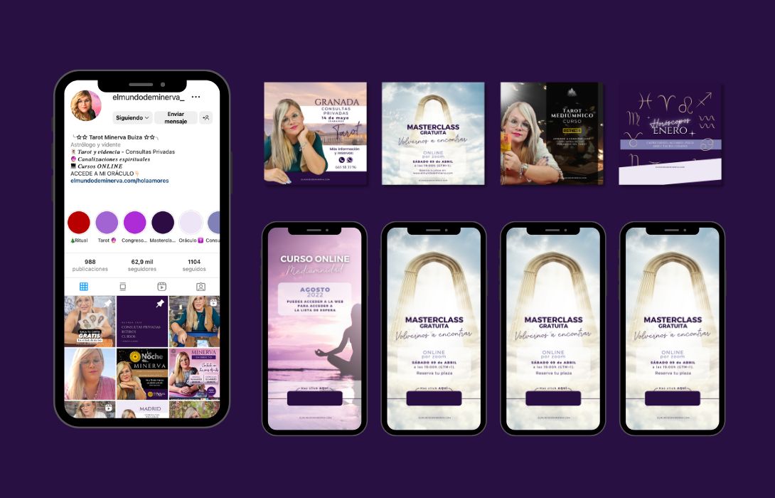 Minerva Buiza, una creadora con una visión única dentro del mundo del Tarot y la espiritualidad, buscaba dar un salto profesional y consolidar su marca en el entorno digital. El objetivo era transformar su universo simbólico en una identidad visual sólida, coherente y expansiva, además de construir una escuela online capaz de acoger su creciente comunidad de estudiantes.
