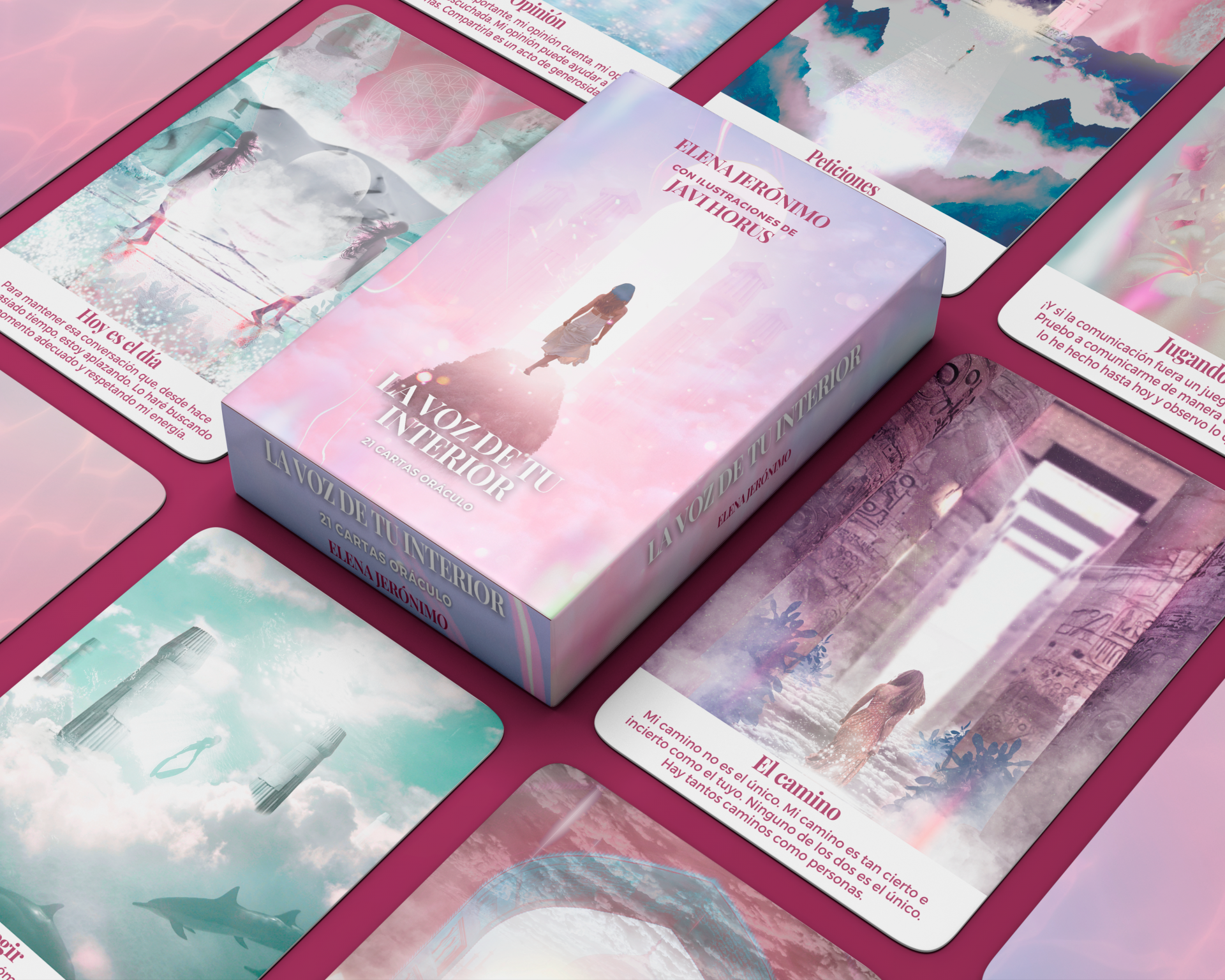 Elena confió en mí plenamente. Me dio total vía libre para la creación de este oráculo siguiendo los colores de su marca. Imágenes canalizadas por los mensajes que ella misma canalizó y que llegó a ser más que un proyecto para mí. Gracias Elena por dejarme crear esta maravilla contigo.